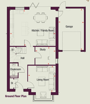 - Recessed chrome spotlights to kitchen, bathroom and cloakroom